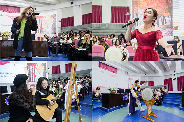 第二部分中,大連世宗學(xué)堂,大連民族大學(xué),大連大學(xué)的學(xué)生為我們帶來了精彩的文藝表演,融合了中韓兩國文化和語言的演出, 讓會(huì)場氣氛更加溫暖和融洽,也讓我們更加深刻地體會(huì)到中韓文化的魅力。