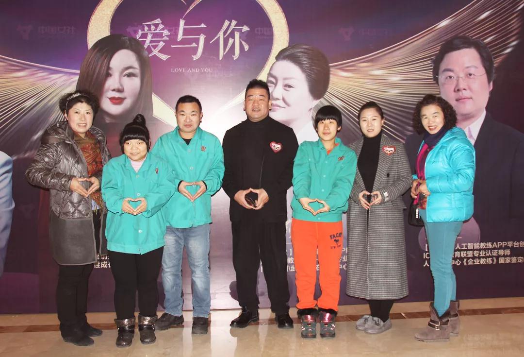 遼寧省公益基金會外聯(lián)部主任張波先生(左4)等人與陽光工場的孩子們