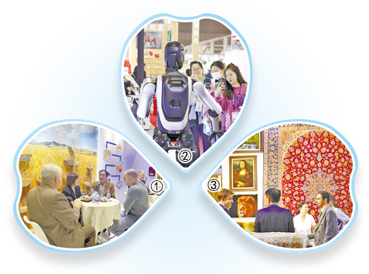圖③:伊朗參展商向參觀者介紹地毯等特色產(chǎn)品。