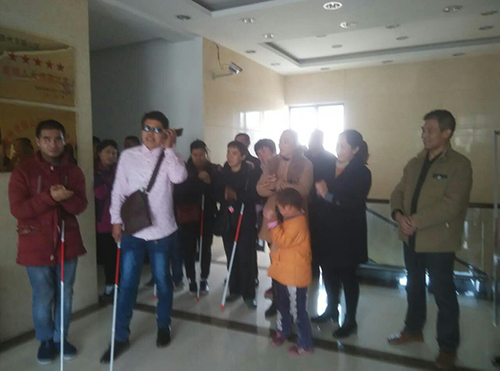 訓練結束,大家聚到一起,交流學習使用盲杖的體會,聊到興奮時,大家一致推薦張計劃和楊統(tǒng)兩個小伙子進行現場表演節(jié)目,他們分別唱了“紅塵男女”、“等你等了那么久”等幾首悅耳動聽的歌曲,大家掌聲不斷、精彩無限!他們很多人都多才多藝,藏龍臥虎,出乎我們的意料!活動結束了,他們都被引領到一樓大廳免費領取救助物品。