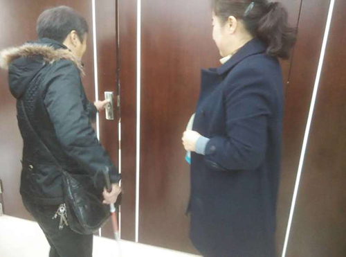 每一個動作都分解到位,直到每個參訓的盲人朋友都能熟練、規(guī)范地使用盲杖后,又開始練習開門、下樓梯等動作,整個訓練過程氛圍十分活躍。