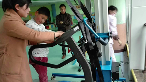 我采訪了另一個小朋友叫張凱旋,當我們到達福利院時,凱旋的媽媽正在配合老師給孩子做肢體訓練?吹胶⒆拥牡谝谎畚揖拖矚g上了這個小家伙,1.4米的個子,胳膊、腿都很長,濃眉大眼,一臉稚氣,能看得出這孩子屬于內向型的,不太言語。在老師的指導下認真地把每個動作做到最好的極限!為了不影響孩子的正常訓練,我和凱旋媽媽悄悄地走到一邊,輕聲的攀談起來。凱旋媽媽是一個堅強而偉大的好母親,美麗大方有責任感,談起孩子的成長歷程,時不時地眼里閃著淚花,她語重心長地說:“我生孩子時比較年輕,很多事情不太懂,因為生活在農村,家庭經濟條件不好,就在當地的小醫(yī)院生產的,當時孩子有些難產但最后總算生下來啦!小家伙的誕生也給整個家庭帶來了歡樂!可孩子九個月大時就發(fā)現和正常孩子不太一樣,天天嗆奶,于是就去醫(yī)院檢查,結果確實有問題,醫(yī)生說嗆奶的原因是大腦反應遲鈍、吞咽功能不協(xié)調造成的。將來可能要影響正常生活。聽了醫(yī)生的診斷我們全家都接受不了這樣的現實,孩子的病給原本拮據的家庭蒙上一層陰影,真的是雪上加霜!從那時開始,我們就帶著孩子到處求醫(yī)問藥,市兒童醫(yī)院去了好多趟,因為經濟條件不好,醫(yī)藥費太高,實在看不起,就帶著孩子去陜西醫(yī)院,在那整整看三年,我們夫妻倆省吃儉用,砸鍋賣鐵,所有的親戚能借的錢都借了,最后實在支撐不住了只好回家,當時心灰意冷,死的心都有,我們夫妻倆回來時個個瘦的不成樣子,我媽看到我們不敢認了,抱頭痛哭,簡直走投無路。沒錢去醫(yī)院,為了方便練習走路只好借錢買了一臺跑步機!我每天料理好家務之外,雷打不變的工作就是幫孩子做康復訓練,按醫(yī)生的規(guī)范動作教孩子,每天4個小時的訓練強度,畢竟孩子年齡小,有時候堅持不住就哭鬧,爺爺、奶奶、還有老太太都心痛不讓練了我就把門反鎖起來,把窗簾拉上不讓他們看見,哄好后給他講道理,孩子很乖、很聽話知道我這樣做也是對他好,擦干眼淚咬牙堅持再練,我知道如果不堅持就會前功盡棄!后果不堪設想!再大的阻力和困難我都要抗住!我的心雖然也在流淚、在滴血但為了孩子的康復和未來我必須忍痛割愛!看到孩子小小的年紀每天經受著病魔的摧殘我們全家看在眼里,痛在心上!為了多賺幾個錢給孩子看病,他爺爺60多歲拖著病體和他爸爸一起在建筑工地沒日沒夜的連班轉,平時一分錢都不舍得花,爺倆每天都身心疲憊不堪,我心里就像刀絞一樣不忍!5、6年我都沒添一件新衣服。我們都不知怎么熬過來的!孩子一天天長大懂事了,看別的同齡小朋友都上學,他哭著鬧著要上學,我?guī)缀跖軘嗔送,找好多學校都被拒之門外,為了滿足孩子的愿望,說再難聽的話我都忍,決不放棄!最后學校校長、老師必須讓我簽協(xié)議,在校發(fā)生的一切事情與學校無關、后果自負!我說只要能讓孩子上學啥條件我都答應!我的執(zhí)著終于感動他們,勉強收下啦!好在孩子懂事、聽話、爭氣也很刻苦,每科成績都考90多分!沒有辜負大家的希望。同樣的成績凱旋要比其他同學付出十倍的努力,他每天完成作業(yè)之后還要進行四個小時的肢體康復!現在只能用左手寫字、畫畫。我現在每天都在學校陪讀!照顧孩子的日常生活,每天扶他上下樓梯、上衛(wèi)生間,最后一節(jié)課我就回去給孩子做飯拿來學校吃!自從來到學校接觸同學之后,性格開朗多啦!為了孩子能學到知識,不被社會淘汰,也能自立自強!我犧牲再多都無怨無悔!”