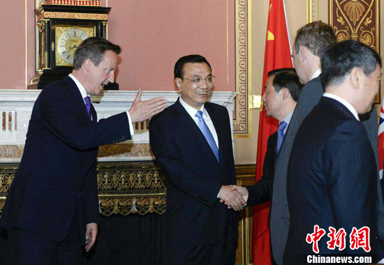 中新網(wǎng)倫敦6月17日電 (記者 郭金超 周兆軍)當?shù)貢r間17日下午,國務院總理李克強與英國首相卡梅倫舉行會談后,共同見證了有關雙邊合作文件的簽署。