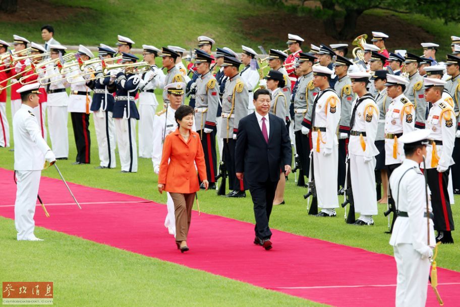 7月3日,國家主席習(xí)近平在首爾同韓國總統(tǒng)樸槿惠舉行會談。會談前,樸槿惠在青瓦臺總統(tǒng)府為習(xí)近平舉行隆重歡迎儀式。新華社記者姚大偉攝