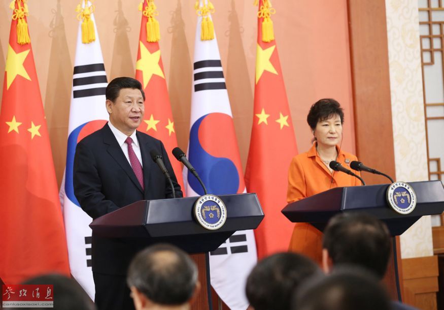 7月3日,國(guó)家主席習(xí)近平在首爾同韓國(guó)總統(tǒng)樸槿惠舉行會(huì)談。會(huì)談后,兩國(guó)元首共同會(huì)見(jiàn)記者。新華社記者姚大偉攝