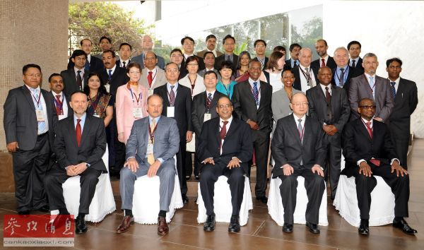 出席第二屆金磚國(guó)家銀聯(lián)體合作機(jī)制年會(huì)的代表在會(huì)前合影。(資料圖)