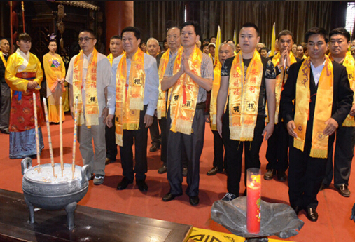 本次羊氏宗親聯(lián)誼共有兩天日程。除宗親會(huì)議的舉辦外,期間還組織族人在大槐樹老家暢游、聚餐。活動(dòng)的壓軸禮為913日上午在洪洞大槐樹尋根祭祖園獻(xiàn)殿舉行的“公祭羊氏始祖列祖列宗大典”。大典采用了洪洞大槐樹尋根祭祖園傳統(tǒng)的祭祀議程,200位羊氏族人在老家威風(fēng)鑼鼓、民間傳統(tǒng)舞龍表演的熱情歡迎下走入根雕大門,觀看《移民情景劇》表演,之后祭拜了古大槐樹。祭祀典儀正式開始后,羊氏宗親莊重肅穆的氛圍中祭拜了羊氏先祖,浙贛、瓊粵、甘黔、湘桂、蘇皖、魯豫鄂、渝滇等七個(gè)羊氏宗親團(tuán)向先祖敬獻(xiàn)花籃,羊文超會(huì)長代表宗親會(huì)向先祖敬致祝文。