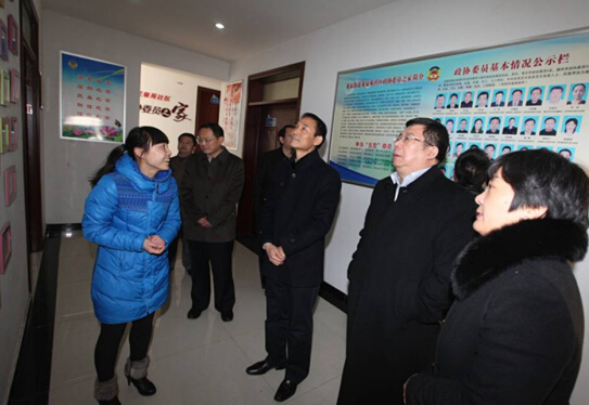 滕州市政協(xié)主席李健、副主席喬令梅、秘書長王玉亞陪同視察。圖為市政協(xié)領(lǐng)導在查看政協(xié)委員之家建設(shè)和活動開展情況。