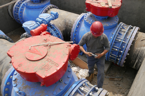 本網(wǎng)滕州4月29日訊(通訊員梁穎)近日,在西崗鎮(zhèn)東王莊村附近的南水北調(diào)續(xù)建配套工程施工現(xiàn)場(chǎng),技術(shù)員正在檢修管道閥門(mén)安裝情況。