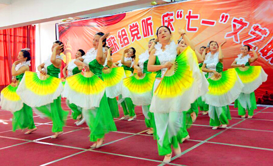 參觀結(jié)束后,臨泉縣健身舞蹈隊和蕭縣老年大學(xué)藝術(shù)團在縣老干部活動中心禮堂進行了交流演出。臨泉縣健身舞蹈隊的演員們先后表演了自編快樂瑜伽操《舞韻瑜伽》、藏 舞 鍋 莊 舞《哎呀,鍋莊》、健身 球 操、健身 腰 鼓《歡天喜地》,縣老年大學(xué)夕陽紅藝術(shù)團的演員們先后表演了軍樂演奏《沒有共產(chǎn)黨就沒有新中國》、舞蹈《畫鄉(xiāng)秧歌》、《卓瑪》,歡樂 腰 鼓《保衛(wèi)黃河》、葫蘆絲合奏等十多個精彩的節(jié)目。整場交流演出高潮迭起,精彩連連,掌聲不斷,達到了互相學(xué)習(xí)、取長補短、增進友誼、共同提高的目的。