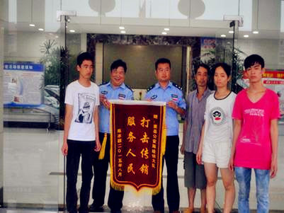 受害人被解救后,其家屬對我大隊民警的熱情服務態(tài)度深表感謝,對蕭縣警方的過硬作風給予高度評價。并贈送“打擊傳銷、服務人民”錦旗一面。