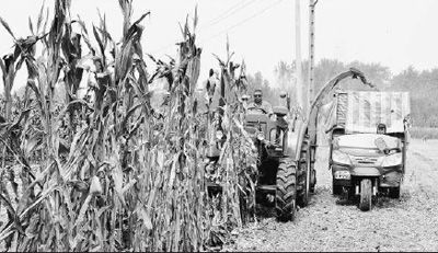 太康縣一家合作社正在收秸稈,作為養(yǎng)牛場飼料! £ 陽攝