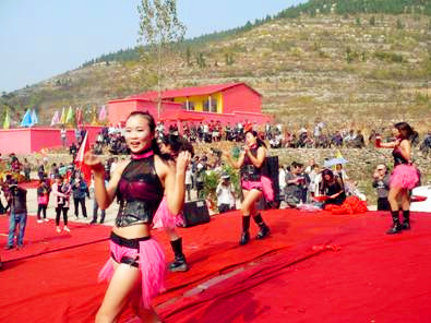 天尊老祖寺廟里前來祈福的信眾不斷涌來,香火旺盛,鞭炮聲不絕于耳。戲臺上演著歌舞、戲曲、舞獅、模特走秀等精彩節(jié)目,雅俗共賞。市里來的書法家們背依大山,現(xiàn)場書法作畫。附近的村民從家里拿來原生態(tài)的山楂、核桃、花椒、花生等農(nóng)副產(chǎn)品擺攤銷售。