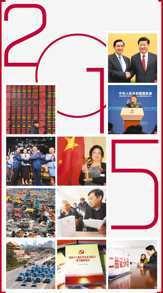 2015年,我們共同經(jīng)歷,紀(jì)念抗戰(zhàn)勝利和應(yīng)對(duì)股市起伏;我們共同見證,兩岸翻開新一頁(yè)和獨(dú)生子女政策終結(jié);我們共同感受,屠呦呦探索的艱辛和天津港事故的悲痛;我們共同喝彩,反腐斗爭(zhēng)的深入和軍隊(duì)改革的加快;我們共同期待,北京冬奧時(shí)間的臨近和“十三五”規(guī)劃的到來(lái)。