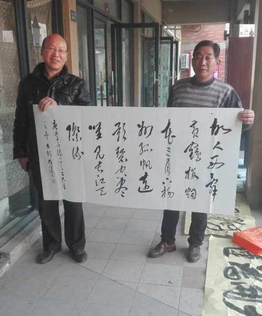 (本網(wǎng)訊:樂天)20151230日上午,書畫家朱繼森、常立民、石伯運(yùn)在世界華人書畫家協(xié)會江蘇分會副主席滕富強(qiáng)先生的聯(lián)絡(luò)帶領(lǐng)下,專程到位于徐州東部綠地的“行禪素食綠地菜館”,受到總經(jīng)理周長鴻先生的熱情接待,為迎新春共建精神文明舉辦了有意義的書畫奉獻(xiàn)活動。