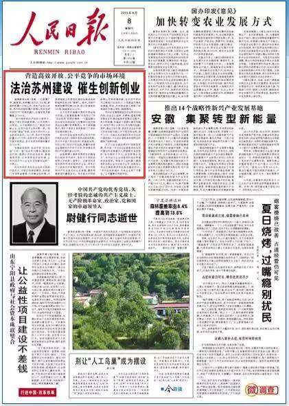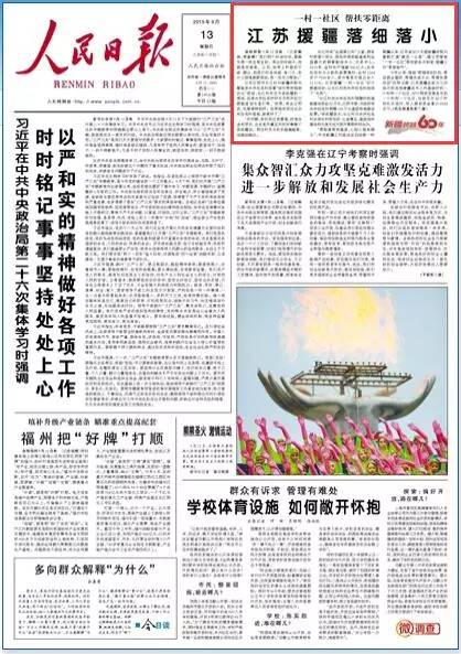 2015年已經(jīng)過去,這一年對(duì)江蘇意義非凡。江蘇智造、經(jīng)濟(jì)轉(zhuǎn)型升級(jí)、蘇州法治建設(shè)、科技體制改革、援疆幫扶……銳意改革創(chuàng)新的江蘇地方先進(jìn)經(jīng)驗(yàn),化作文字的力量,登上了《人民日?qǐng)?bào)》頭版頭條。