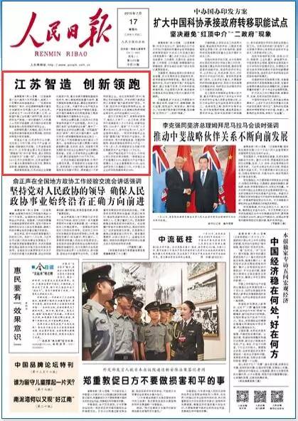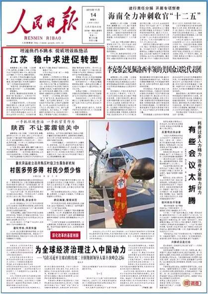 2015,什么江蘇新聞上了人民日?qǐng)?bào)一版頭條?
