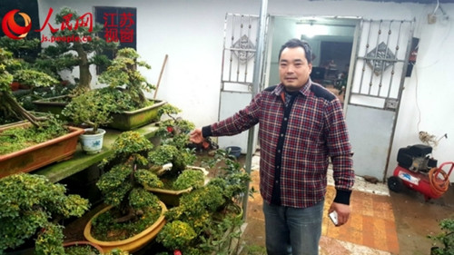 沭陽新河鎮(zhèn)周圈村盆景網店經營戶周航舶介紹情況 王新年攝
