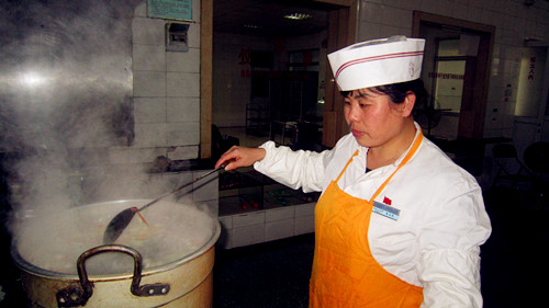 中國(guó)黃淮網(wǎng)訊(通訊員 于保偉/攝影報(bào)道)周玉芝,女,中共黨員,現(xiàn)任徐州北一公寓炊事員。 20年前,她是從山東省棗莊市農(nóng)村頂替父親入路,對(duì)自己能成為一名鐵路工人,她感到十分知足和自豪。自從她工作那天起,就繼承了父輩那樣勤勞、樸實(shí)優(yōu)良工作作風(fēng),立志做一名積極向上、工作努力好職工,為鐵路事業(yè)改革發(fā)展奉獻(xiàn)自已的青春年華。平時(shí)她在提高自身素質(zhì)上下功夫,作為鐵路后勤保障一員,自覺(jué)增強(qiáng)“我為您服務(wù)”的主動(dòng)性,笑臉如春風(fēng),服務(wù)創(chuàng)效益。所以,她不斷探索和提高后勤服務(wù)質(zhì)量和作業(yè)標(biāo)準(zhǔn),牢固樹(shù)立“客戶(hù)并不依賴(lài)我們,而我們卻依靠客戶(hù)”的思想,樹(shù)立“服務(wù)至上”的理念和“今天的服務(wù)就是明天的市場(chǎng)”服務(wù)信條。