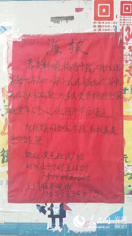 今年春節(jié)前夕,鄒師傅在小區(qū)黑板報(bào)貼上通知,約定拍照地點(diǎn)和時(shí)間。可時(shí)間沒到,已有街坊找他預(yù)約了。
