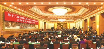 十二屆全國人大四次會議江蘇代表團7日下午在人民大會堂東大廳舉行全體會議,繼續(xù)審議政府工作報告,審查“十三五”規(guī)劃綱要草案。根據(jù)大會安排,這次會議向境內(nèi)外媒體開放。省委書記羅志軍、省長石泰峰回答了中外記者提問。