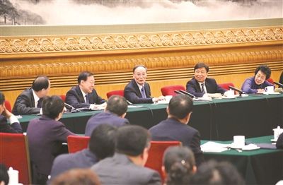 如何把五大發(fā)展理念貫徹落實(shí)到建設(shè)“強(qiáng)富美高”新江蘇的實(shí)踐中去?如何協(xié)調(diào)推進(jìn)“四個(gè)全面”確保在“十三五”發(fā)展中繼續(xù)走在全國(guó)前列?十二屆全國(guó)人大四次會(huì)議江蘇代表團(tuán)今天上午在北京人民大會(huì)堂東大廳舉行全體會(huì)議。中共中央政治局常委、中央紀(jì)委書記王岐山來到江蘇代表團(tuán),與大家一同認(rèn)真審議,真情互動(dòng)交流。江蘇代表團(tuán)團(tuán)長(zhǎng)、省委書記羅志軍主持會(huì)議。