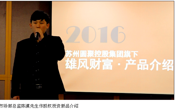 發(fā)布會上,蘇州圓聚控股集團(tuán)董事長陳懷中先生首先指出,辦好此次發(fā)布會意義重大,對公司盡快進(jìn)入資本市場,邁向股權(quán)時(shí)代,打造“互聯(lián)網(wǎng)金融的阿里巴巴”的宏偉目標(biāo)具有重大影響。同時(shí),他強(qiáng)調(diào)集團(tuán)旗下的雄風(fēng)財(cái)富管理有限公司所有精英們,一定要和社會各界股權(quán)愛好者加強(qiáng)合作,攜手并進(jìn),讓雄風(fēng)財(cái)富力爭在本年度內(nèi),在為股權(quán)投資者服務(wù)層面不斷邁向新的臺階。