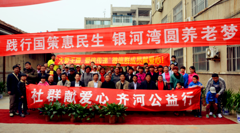 2016410上午十時,由山東政法學(xué)院教師、泰和泰(濟(jì)南)律師事務(wù)所兼職律師潘志玉聯(lián)合逸鳴廣場歌友會、山東魅力女人群、菏澤老鄉(xiāng)會、齊河老鄉(xiāng)會、手拉手資源整合匯、地球村企朋商會等多家微信社群共同發(fā)起的敬老公益活動在齊河縣銀河灣老年公寓舉行。齊河縣民政局、齊河縣老齡委,以及中國黃淮網(wǎng)、齊魯名人雜志社、濟(jì)南時報、齊河電視臺等有關(guān)領(lǐng)導(dǎo)參加捐贈儀式。
