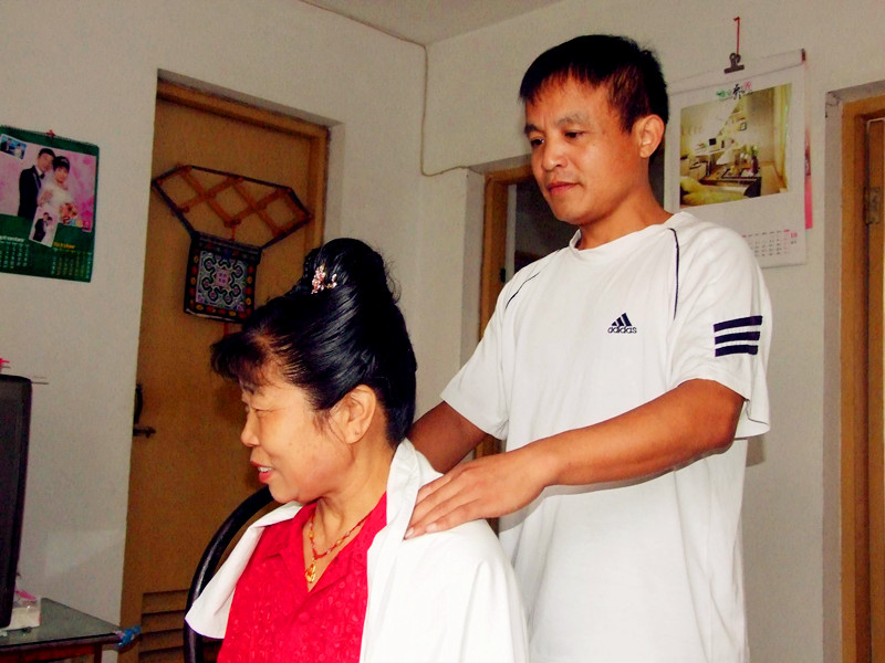 張新生,今年56歲,是上海鐵路文化廣告發(fā)展有限公司杭州列車廣告公司干事。出身于醫(yī)生世家的他,還在上小學(xué)時(shí)的就崇拜當(dāng)醫(yī)生的母親。每當(dāng)看到母親為解除病人痛苦時(shí),他都覺得母親太了不起了。他?吹接行┻\(yùn)動員在各類比賽中出現(xiàn)扭傷、崴腳之類的傷害,但讓他感到神奇的是經(jīng)過母親三推兩拽,又蹦蹦跳跳地參加比賽,這一切都在他幼小的心靈中種下了立志學(xué)醫(yī),為民解難的夙愿。入路后,張新生成了徐州車輛段的一名檢車員并很快成為小有名氣的技術(shù)骨干。在緊張的工作之余,他充分利用晚上有限的時(shí)間,自費(fèi)參加了徐州科技大學(xué)中醫(yī)班的學(xué)習(xí),并師從于上海中醫(yī)院院長、針灸系推拿系教授張?zhí)煜壬;而后又受益于徐州中醫(yī)院推拿科主任張運(yùn)生中醫(yī)理論的諄諄教誨。由于成績出眾,張教授力推他跟隨國內(nèi)著名醫(yī)學(xué)教授,原鐵道部長呂正操的專職推拿按摩師、北京的葛長海先生學(xué)習(xí)“捏筋拍打療法”、馬秀堂教授的“點(diǎn)穴療法”和天津中醫(yī)學(xué)院陳相平教授的“手足按摩、刮痧自我診斷療法”。由于刻苦勤奮,他不僅順利通過了“中醫(yī)師”資格證書的考試,還被吸收為“中國推拿協(xié)會”會員,成為“徐州市推拿分會”中最年輕的會員。
