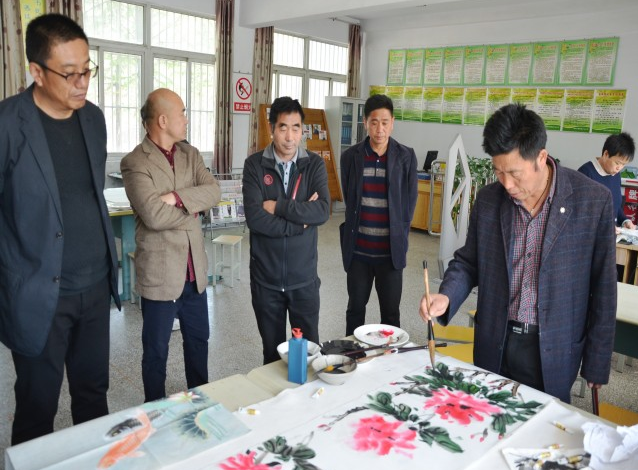解碩群處長一行還參觀了學(xué)校圖書室,對學(xué)校圖書室建設(shè)提出了意見。臨別前,同行的徐州市著名書畫家劉世龍、楊思良等為學(xué)校校園文化建設(shè)揮毫潑墨。解碩群處長勉勵學(xué)校領(lǐng)導(dǎo)繼續(xù)扎實(shí)開展工作,充分發(fā)揮徐州市書香校園、銅山區(qū)優(yōu)秀讀書集體的輻射帶動作用,充分發(fā)揮銅山區(qū)校園最美圖書館的功能。解處長還表示近期將為學(xué)校捐贈一批價(jià)值50000元的圖書,以支持學(xué)校的閱讀工作。楊楓校長對徐州市文化廣電新聞出版局、徐州市全民閱讀活動領(lǐng)導(dǎo)小組對學(xué)校讀書工作的支持表示感謝,表示一定要以這次視察指導(dǎo)為契機(jī),進(jìn)一步加強(qiáng)讀書建設(shè),進(jìn)一步促進(jìn)全民閱讀,為建設(shè)學(xué)習(xí)型社會,建設(shè)創(chuàng)新型國家做出應(yīng)有的貢獻(xiàn)。