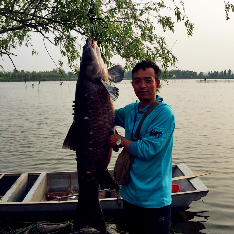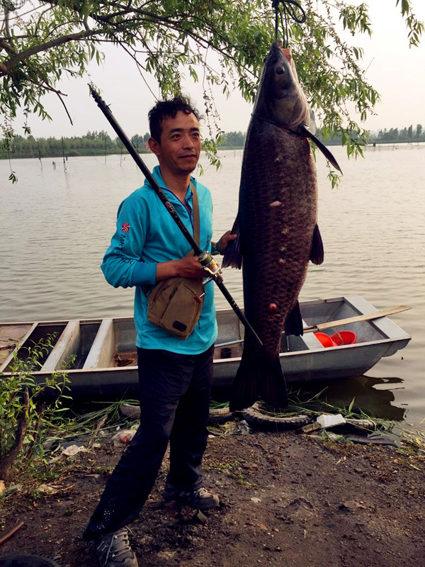據(jù)釣友王克勝介紹,當日上午,他拿著吊桿(機釣竿)早早來到了東湖公園岸邊垂釣,大約10:00的時候,他感覺釣竿一沉,而且沉的很深,憑經(jīng)驗,有著十多年釣齡的克勝感覺到,這應該是條大魚,他穩(wěn)穩(wěn)地扯住釣線,順著魚掙扎的方向,盡量把它耗累,經(jīng)過了四五十分鐘的折騰,借助小漁船,一條大魚終于被制服,拖出了水面。