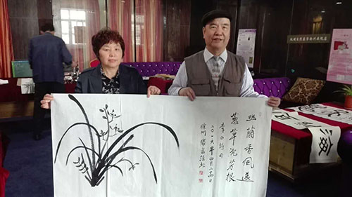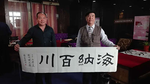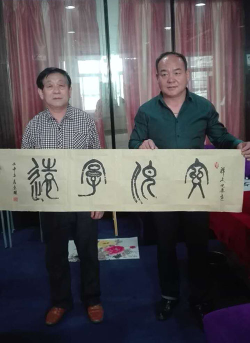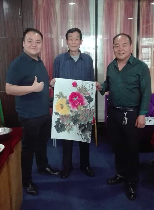 (本網(wǎng)訊/樂天)2016年4月24日上午,世界華人書畫家協(xié)會江蘇分會副主席滕富強先生,中國書畫名家藝術(shù)聯(lián)誼會主席常立民先生,中華功勛書畫家鹿丙耀先生,三名書畫家現(xiàn)場揮毫潑墨,有鐘鼎文、古陶文、小篆和艷麗的牡丹、碧綠的翠竹等作品,表演時受到該店經(jīng)理祁凱的熱烈歡迎,大家在友好的氣氛中交流,談笑風(fēng)生,加深了友誼,傳播了中華傳統(tǒng)的書畫藝術(shù),共表演書畫作品20幅。