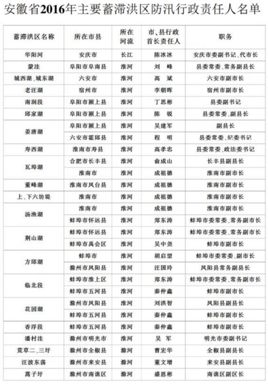 安徽省領(lǐng)導(dǎo)防汛抗旱責(zé)任分工確定(分工表)