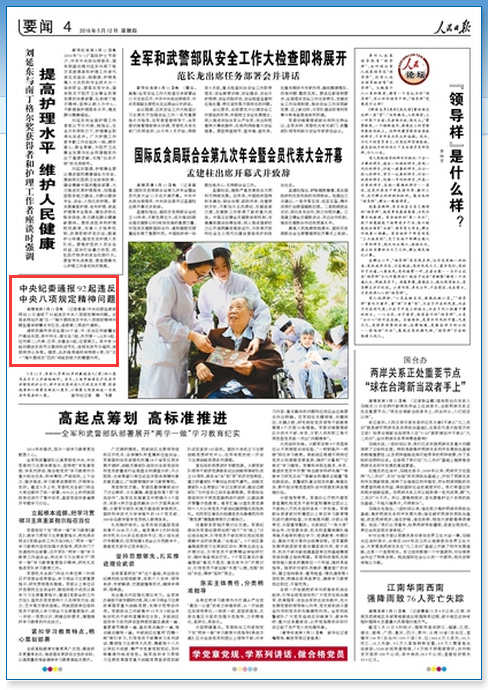 人民日報:中紀委通報江蘇5起違反八項規(guī)定問題