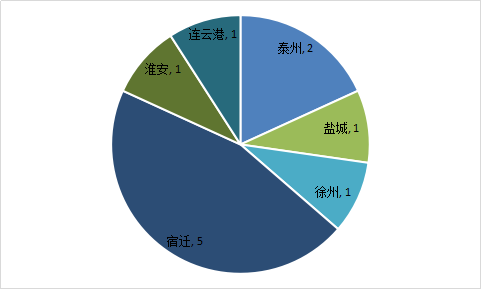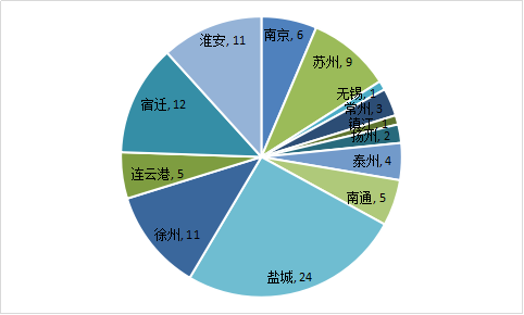 按區(qū)域分布,鹽城再居江蘇13市之首,徐州、淮安均以11條投訴,并且第二位。投訴量最少的是無錫和鎮(zhèn)江,均只有1條。