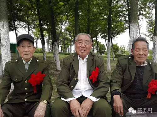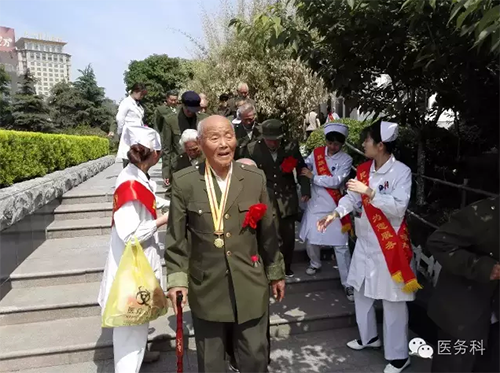 醫(yī)務(wù)人員與老戰(zhàn)士合影留念,互道保重!