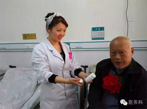 醫(yī)師周曄通過(guò)向革命功臣采集病史后,發(fā)現(xiàn)老戰(zhàn)士患有冠心病,根據(jù)病情暫時(shí)發(fā)放口服藥品并建議老戰(zhàn)士體檢完畢后進(jìn)一步接受治療!