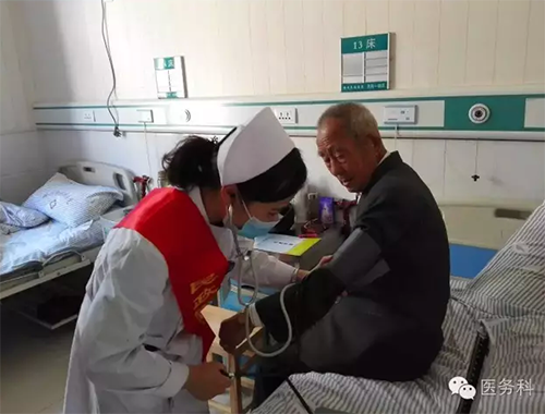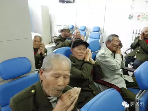 醫(yī)務(wù)人員每天為功臣們檢測(cè)血壓、血糖等情況,準(zhǔn)確掌握了每位老人的身體狀況,為他們制定了個(gè)性化的、可行的診療方案。