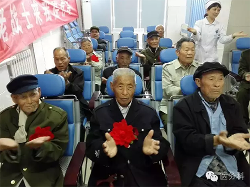 當(dāng)這些革命功臣們從黨支部書記、副院長(zhǎng)沈青手里接過(guò)裝滿日用品的功臣慰問(wèn)包時(shí)激動(dòng)的熱淚盈眶!深情地說(shuō):“感謝黨和政府及領(lǐng)導(dǎo)對(duì)我們的關(guān)愛(ài)!我們一定要好好地活著,盡量不給國(guó)家和你們添麻煩!給社會(huì)減輕負(fù)擔(dān)!”多么樸實(shí)的話語(yǔ),著實(shí)讓人感動(dòng)!全院領(lǐng)導(dǎo)和醫(yī)務(wù)人員個(gè)個(gè)忙得不可開(kāi)交!在照顧現(xiàn)有病人的同時(shí)還要照顧好這些“國(guó)寶級(jí)”的功臣們!他們各負(fù)其責(zé)、耐心細(xì)致的照顧好每一個(gè)老人!