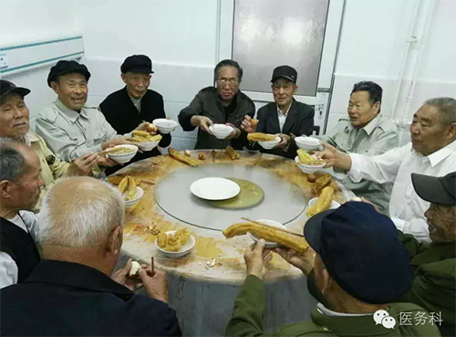 護(hù)士李婷、盧蓮蓮正在精心照顧革命功臣的飲食,葷素搭配、健康營(yíng)養(yǎng)!老人們吃的津津有味!讓那些“扛過(guò)槍、打過(guò)仗”,為中國(guó)革命解放事業(yè)和建設(shè)事業(yè)做出貢獻(xiàn)的功臣們感受到了黨和國(guó)家的關(guān)懷和照顧!