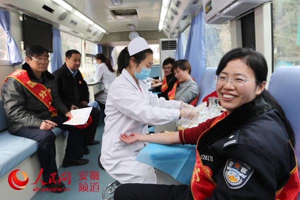 淮北市“中國好人”義務(wù)獻血服務(wù)隊成員在義務(wù)獻血