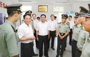 徐州日?qǐng)?bào)訊(記者 秦建莉 李曉航)“八一”建軍節(jié)來臨之際,省委書記李強(qiáng)冒著酷暑來到第12集團(tuán)軍駐徐州某旅“王杰連”,看望慰問子弟兵,代表省委、省政府和全省人民向駐蘇部隊(duì)廣大官兵致以節(jié)日問候和良好祝愿。省委常委、秘書長(zhǎng)樊金龍,市委書記張國(guó)華,市長(zhǎng)周鐵根,第12集團(tuán)軍首長(zhǎng)李廣泉等參加走訪慰問活動(dòng)。