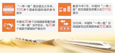 “一帶一路”倡議提出三年來,100多個(gè)國(guó)家和國(guó)際組織參與其中,中國(guó)與30多個(gè)沿線國(guó)家簽署共建“一帶一路”合作協(xié)議、與20多個(gè)國(guó)家開展國(guó)際產(chǎn)能合作,以亞投行、絲路基金為代表的金融合作不斷深化,一批有影響力的標(biāo)志性項(xiàng)目逐步落地。截至今年7月,中國(guó)對(duì)“一帶一路”相關(guān)國(guó)家的投資累計(jì)達(dá)511億美元。2015年,中國(guó)同“一帶一路”沿線國(guó)家雙邊貿(mào)易額突破萬(wàn)億美元。從無到有、由點(diǎn)及面,“一帶一路”海陸統(tǒng)籌、東西互濟(jì)、面向全球的開放新格局漸次鋪開,建設(shè)速度和成果超出預(yù)期。