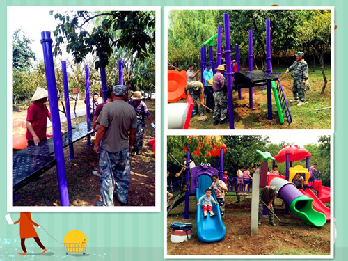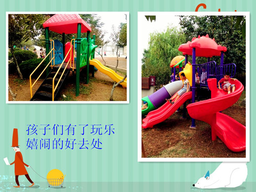 由于來公園玩耍的兒童絡繹不絕,盡管公園里已有的幾處蹺蹺板、搖搖車等兒童娛樂設施,但是當兒童較多時,那些小玩意就成了搶手貨,好些小朋友經(jīng)常為爭搶搖搖車等發(fā)生吵鬧。為了踐行“兩學一做”,為老百姓多做好事、實事,改善社區(qū)居民業(yè)余文化生活,為老百姓和少年兒童們創(chuàng)造一個溫馨優(yōu)雅的活動空間,讓他們感受到新生活的幸福,付書記和社區(qū)兩委領導通過調研,決定再購進一部分兒童喜愛的設施,于是,這部新添的兒童滑滑梯,就落戶在社區(qū)南邊的白云山公園小樹林里,讓這些兒童有了玩耍的好去處。