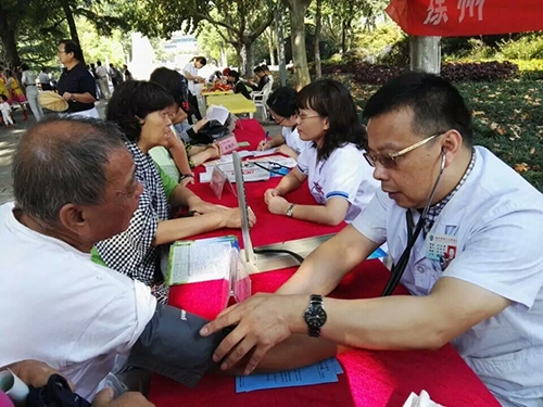 徐州市第一人民醫(yī)院專家博士義診團為參加第四節(jié)老年藝術(shù)節(jié)活動市民“把脈”