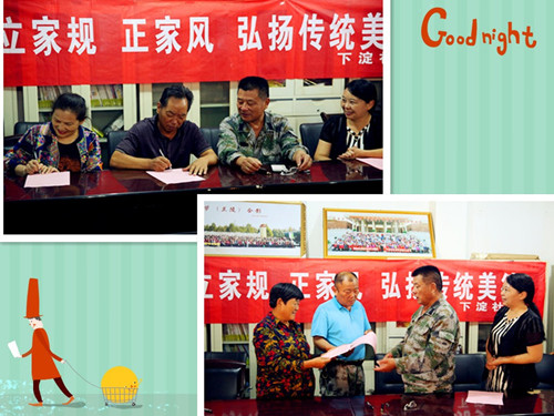 “兩學(xué)一做”活動(dòng)開(kāi)展以來(lái),下淀社區(qū)為促進(jìn)黨員干部加強(qiáng)家庭建設(shè),培養(yǎng)良好家風(fēng),社區(qū)黨委創(chuàng)新開(kāi)展“領(lǐng)導(dǎo)干部立家規(guī)、共產(chǎn)黨員正家風(fēng)”主題活動(dòng),通過(guò)“學(xué)家規(guī)、立家規(guī)、亮家規(guī)、行家規(guī)”四步走,引導(dǎo)全社區(qū)黨員將愛(ài)崗與愛(ài)家結(jié)合起來(lái),培育良好家風(fēng),推動(dòng)文明家庭、廉潔家庭建設(shè),在全社區(qū)形成家風(fēng)正、民風(fēng)淳、政風(fēng)清的良好風(fēng)尚。