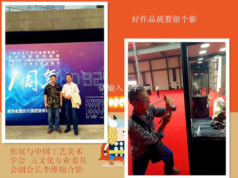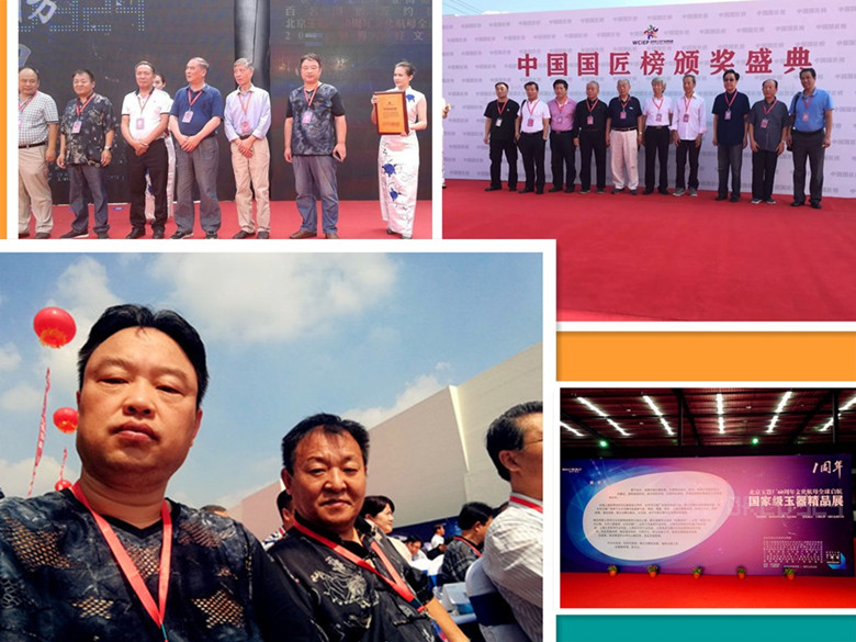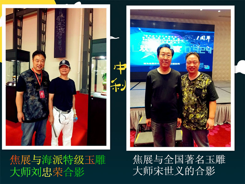 此次活動的另一重頭戲是由全國五十余位玉雕大師和國家級大師攜精品領(lǐng)銜的南北玉雕臻品展,集中展示了150余款玉雕珍品,焦展大師作品《禮佛》、《忠義千秋》、《樂在其中》和《長樂》在此次展會上獲得一致好評。中國工藝美術(shù)大師、玉雕大師宋世義,海派玉雕特級大師劉忠榮等先后來到焦展作品前駐足觀看,稱贊有加。北京玉器廠總工藝師文少雩先生也對焦展如此精湛的作品情有獨鐘,在櫥窗前不停地拍照。