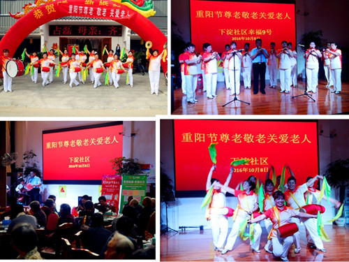 宴會開始前,社區(qū)為老人們準(zhǔn)備了一臺精美的文藝演出,有舞蹈《好日子》、大合唱《社會主義好》、男聲獨唱《創(chuàng)建下淀好家園》以及大提琴、葫蘆絲演奏等;最讓老人們受用的是社區(qū)還專門為他們宣講了健康生活保健知識;社區(qū)領(lǐng)導(dǎo)干部暢談了如何創(chuàng)建文明城市講座;幾名黨員還自愿報名介紹了在“兩學(xué)一做”中如何發(fā)揮黨員作用的體會,他們精彩的演講,迎來一陣陣掌聲。特別是黨委書記付化友同志的祝酒詞把會場氣氛推向高潮。
