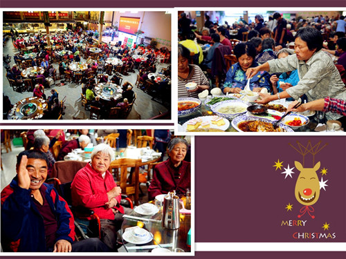 尊老、敬老、愛老,是下淀社區(qū)多年一貫的優(yōu)良傳統(tǒng),為了辦好這次大團(tuán)圓聚餐,社區(qū)提前半個月開始操辦,預(yù)定地點,準(zhǔn)備節(jié)目,購買禮品。你看吧,偌大的餐廳內(nèi),到處是一張張堆滿笑容的臉龐。雖然有的老人步履蹣跚,但是精神頭十足,人們說著笑著問候著。70多歲的張大爺說:“平時老伙計們碰不到面,今天社區(qū)把他們召集在一起暢談、喝酒,真是太好了。”