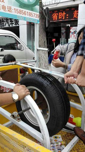 在展廳一角人頭躥動,不斷傳出掌聲和叫好聲。筆者隨著人流擠了進去,原來是阿世隆防扎防爆輪胎的測試現(xiàn)場。地上鋪著兩排放著超大鐵釘?shù)哪景澹惠v嶄新的車輛從上邊壓過。輪胎被扎了深深的針眼,接著做了漏氣測試,車胎依然看起來完好無損,F(xiàn)場傳出陣陣掌聲,有的市民不能說沒有被驚嚇到,很多人用懷疑的眼光來到近處仔細觀看,都不禁伸出了大拇指。